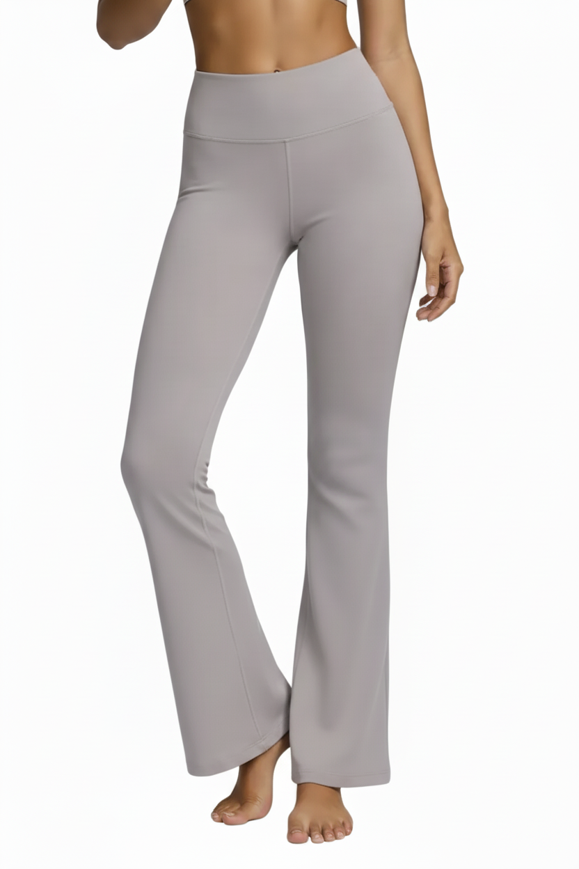 גזרת פעמון מתרחבת (Bell Bottom / Flared) בשילוב מותן גבוהה יוצרת מראה נשי, זורם ומחטב – מושלם ליוגה, פילאטיס וללוק ספורט־אופנתי מחוץ לסטודיו.